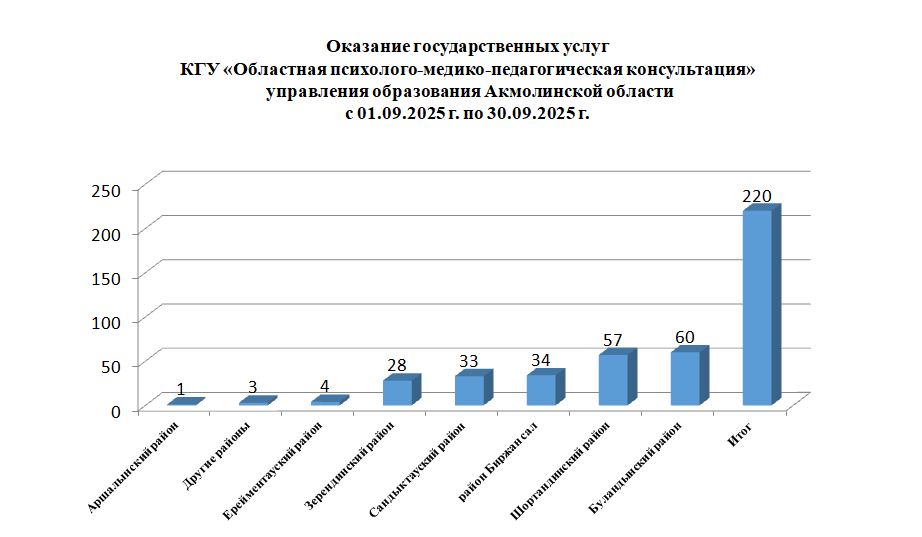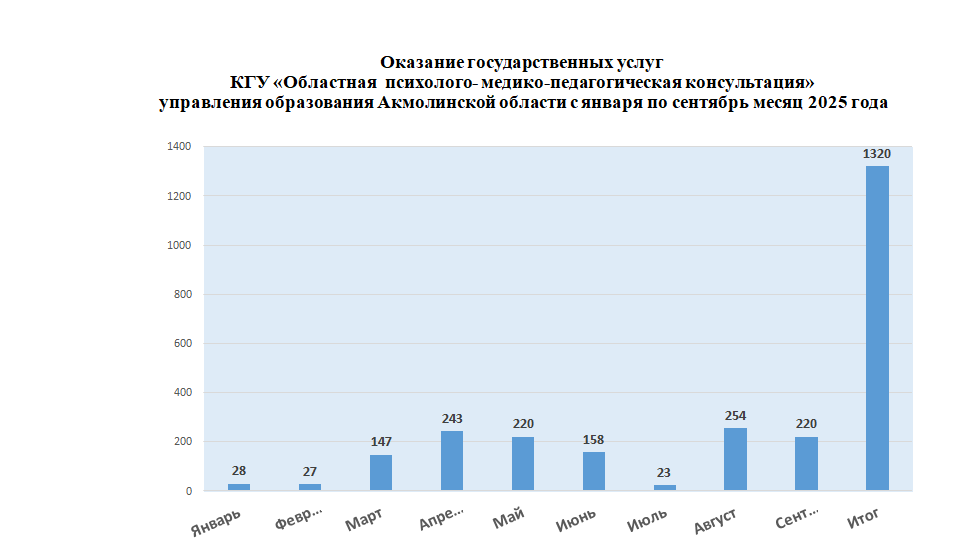 Ақмола облысы білім басқармасының "Облыстық психологиялық-медициналық-педагогикалық кеңесі" КММ 2025 жылдың қаңтар-қыркүйек айлары аралығында мемлекеттік қызмет көрсету.