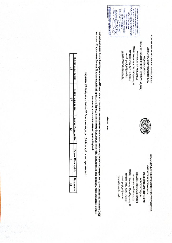 Ақмола облысы білім басқармасының "Облыстық психологиялық-медициналық-педагогикалық кеңесі" КММ-нің 2025 жылдың 1-ші қыркүйектен бастап 30-шы қыркүйек айына дейінгі көрсетілген мемлекеттік қызметтер